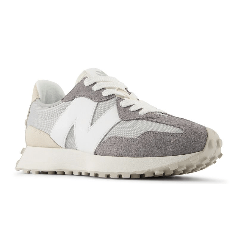 - The upper is made of suede leather and synthetic materials. The enlarged side N emphasizes the mix of retro-modern aesthetics that characterizes the 327 series.